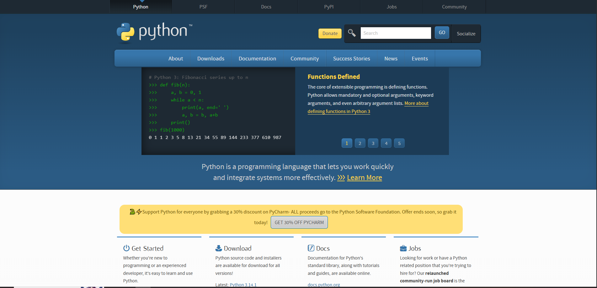 برای دانلود نرم افزار پایتون، ابتدا وارد وبسایت رسمی پایتون شوید. در ادامه ما لینک ورود به وبسایت رسمی پایتون را در اختیار شما همراهان عزیز قرار دادیم